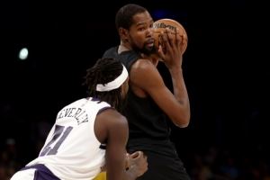 贝弗利表示:“不管怎样,KD在任何时候都能给你25分,这不是谁适应谁的问题,他以正确的方式打球,到了第四节他会更有侵略性。以前对手总是要包夹他,我们和他交手时就不想让他持球,我们就是会包夹他。”