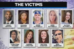 2020年1月26日的直升机事故中9位遇难者分别是:科比、吉安娜,前布鲁斯特白帽队主帅约翰-阿尔托贝利(John Altobelli)与其妻子Kerith、女儿Alyssa,私立小学女子篮球教练Christina Mauser,飞行员Ara Zobayan,吉安娜的队友佩顿-切斯特(13岁),以及佩顿-切斯特的母亲萨拉-切斯特。