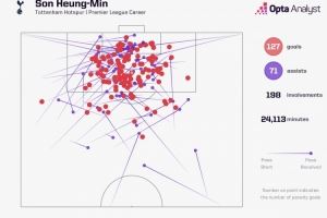 据Opta统计,2015-2016赛季孙兴慜加盟热刺以来,他在英超联赛中参与198球,同期仅少于萨拉赫(270球)和凯恩(231球)。